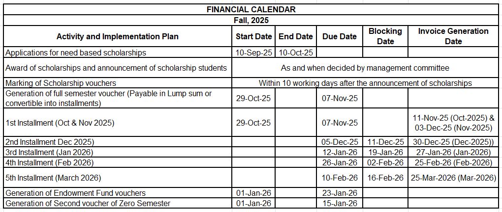 Extension in due date to apply for Need based Scholarship (Fall, 2025)